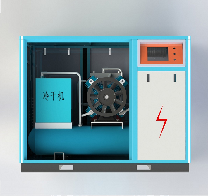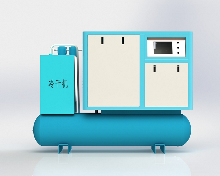 一体式全无油空压机,将空压机、储气罐、冷冻式干燥机、精密过滤器,通过金属管连接为一个整体,用户无需对设备二次管路连接,安装方便,使用便捷。